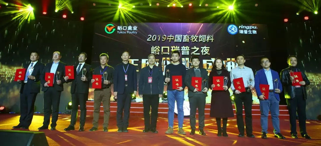12月14日晚上舉行的“峪口瑞普之夜——2019中國畜牧飼料行業(yè)年度頒獎盛典”對2019年“十大商業(yè)模式創(chuàng)新獎、十大優(yōu)秀企業(yè)文化獎、十大品牌肉蛋奶創(chuàng)立獎”進(jìn)行了隆重表彰。